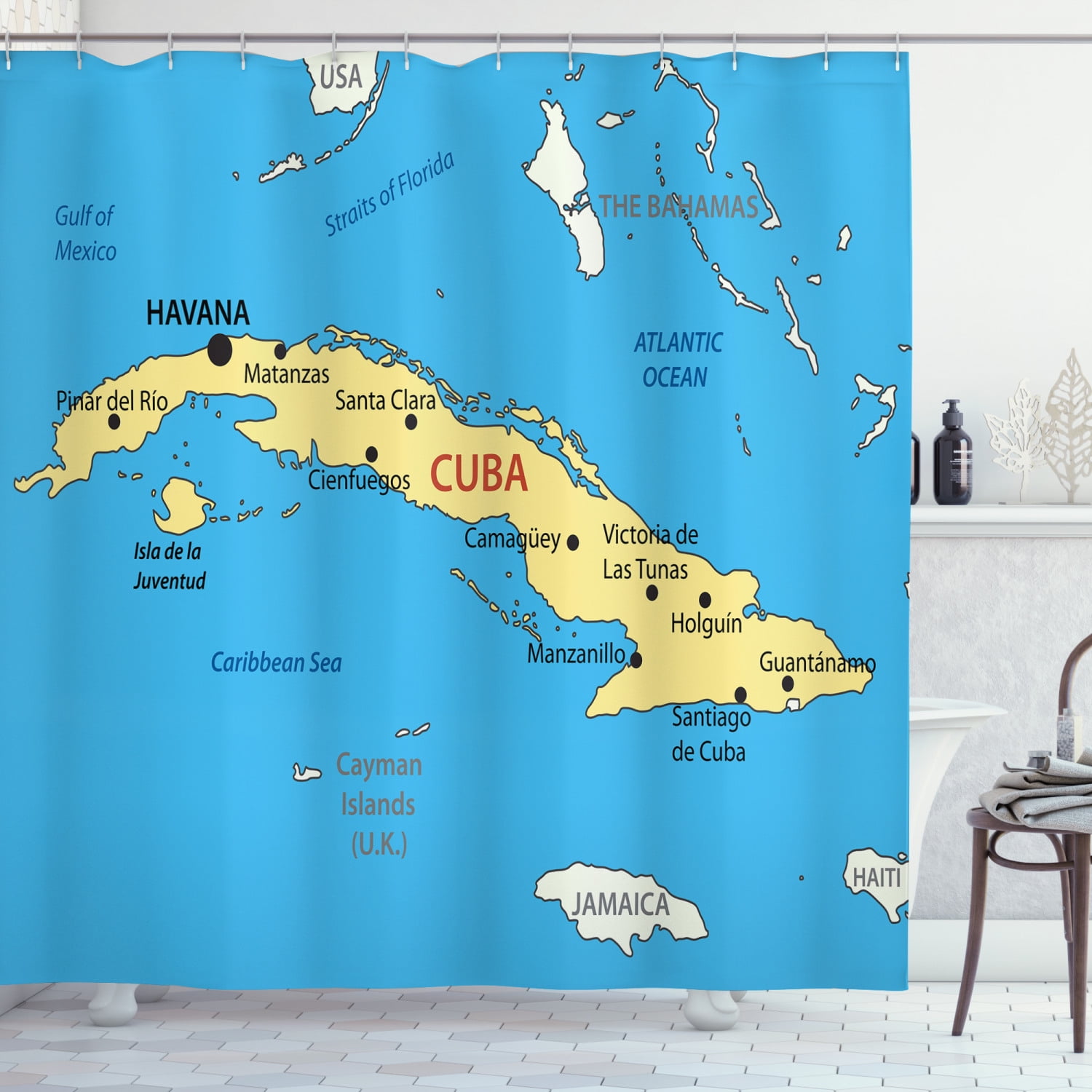 Wanderlust Shower Curtain Republic Of Cuba Modern Geographical Island Atlantic Ocean Illustration Fabric Bathroom Set With Hooks 69w X 75l Inches Long Blue White Yellow By Ambesonne Walmart Com